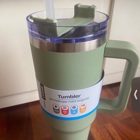 Ubrukt Tumbler i helt nydelig farge. Følger med sugerør og lokk.