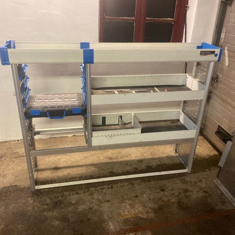 Sortimo gulvskuffer til dobbelt gulv varebil. Skuffene er 50 cm bredde.