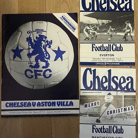 Fotballprogram Tottenham - Chelsea, Coventry, Manchester C., Burnley etc.