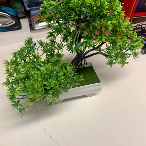 Falsk plante fra IKEA i kurv. 22 cm høy.