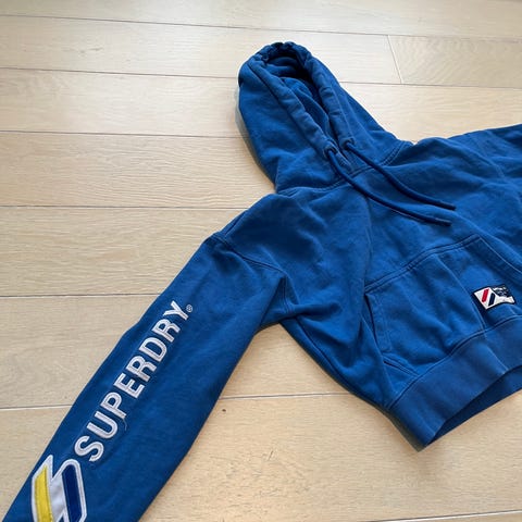 Superdry hettegenser for barn i størrelse 140, 10 år.