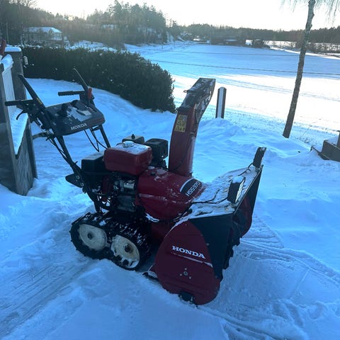 Honda HS80 snøfreser med beltedrift. Passer til rydding av snø på gangveier, oppkjørsler og mindre områder.