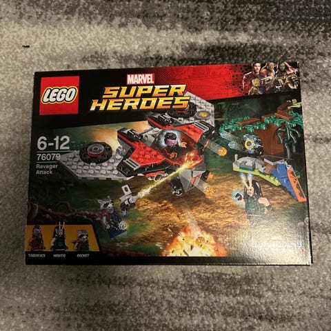 LEGO Marvel Super Heroes Hulkbuster robot byggesett med flere detaljerte komponenter. Settet inkluderer en stor rød og gullfarget robotfigur med bevegelige deler. Passer for byggere og samlere som er interessert i Marvel-universet