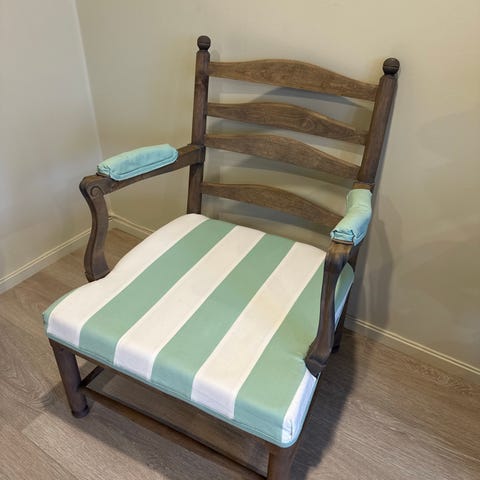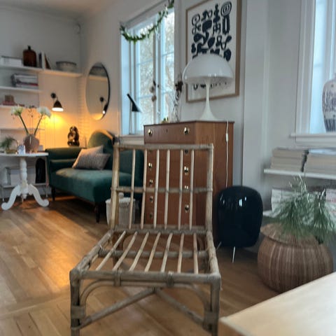 Stol i bambus, pent brukt, har stått i drivhus på sommeren, men oppbevart innendørs på vinteren.