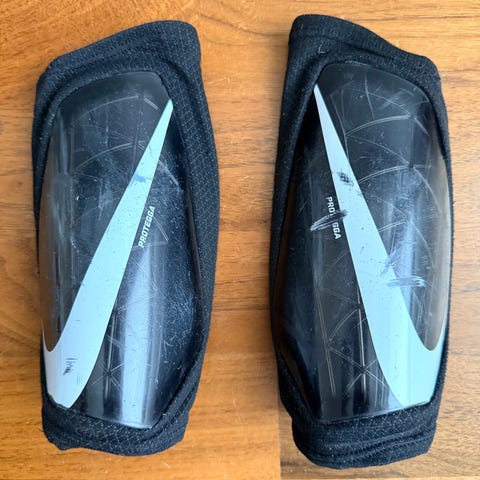Nike leggskinn lengde 17 cm i svart farge. Egnet for bruk i fotball og andre idretter som krever leggskinn for beskyttelse.