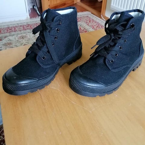 5 er helt flate. Det ene sorte paret har noe hæl (se bilde).