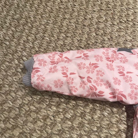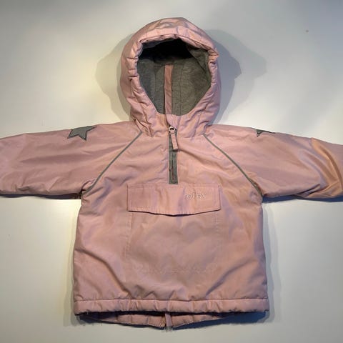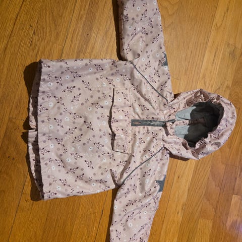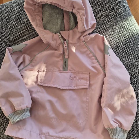 Reflex barnejakke i størrelse 80, flerfarget design. Jakken er laget for jenter og har et mønster med blomster og detaljer i flere farger.