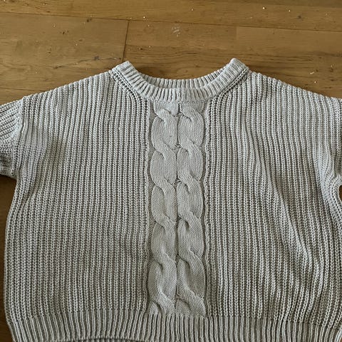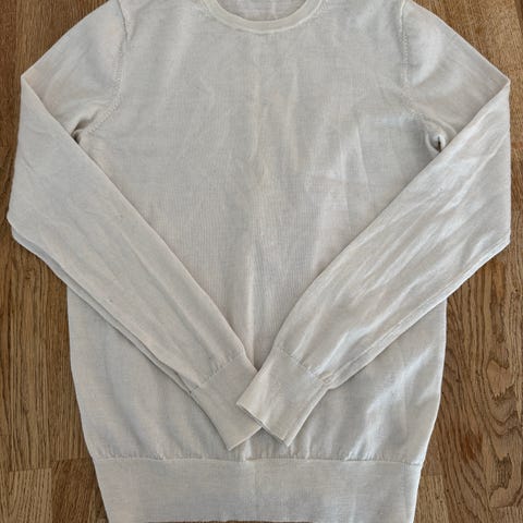 Uniqlo Genser i beige farge, størrelse L for dame. Laget av bomull og polyester. Genseren har en enkel og klassisk design med rund hals. Nupper på genseren, men ellers i god stand.