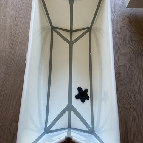Badekar, Stokke Flexi bath. Praktisk, tett, litt sprukket i gummiskjøtene øverst. Se bilde 3. Ellers god stand. Mye bruk igjen.