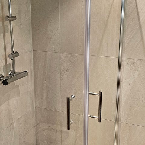 Ifø dusjvegger 90x90cm med sikkerhetsglass og aluminium profiler tilsalgs. Komplett med beslag og amatur /dusj garnityr Kr500,- eller bud.