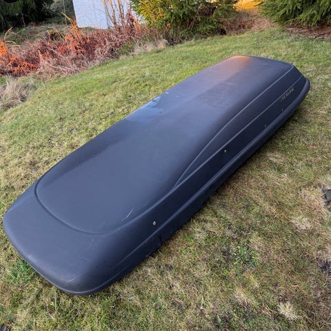 Packline takboks i matt svart med lavt design. Egnet for både ekstra lagringsplass eller transport av ski. Boksen er lav og bred som gjør den til en boks man kan ha på bilen hele tiden.