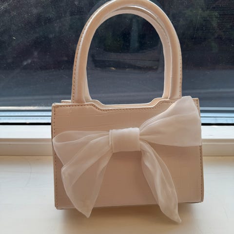 Liten håndveske i sølv selges da den ikke er i bruk lenger. Vesken er i stoff og er fra 90 tallet. Varen kan sendes hvis mottaker betaler for frakten.