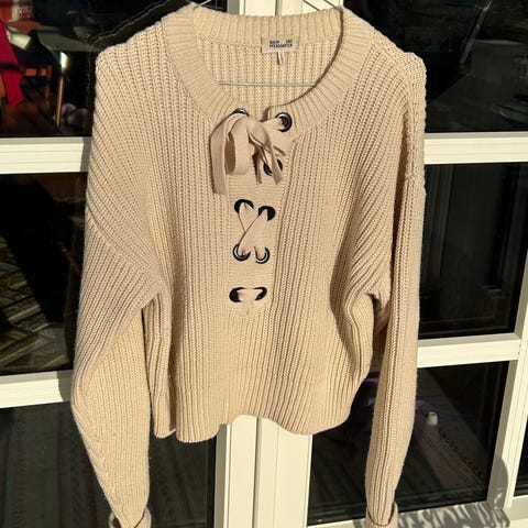 størrelse XS. 70% lammeull, 7% mohair, 21% nylon og 2% ull. Den har noen nupper, men er ellers i god stand.