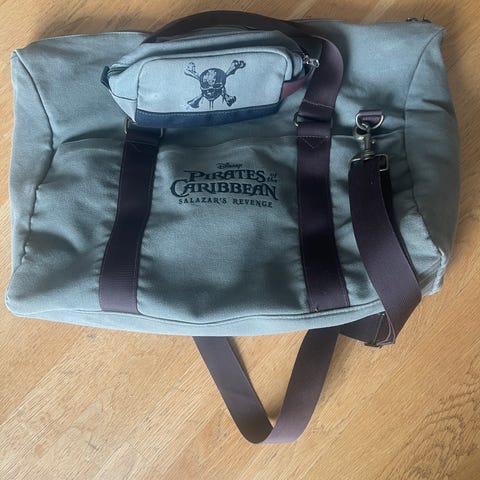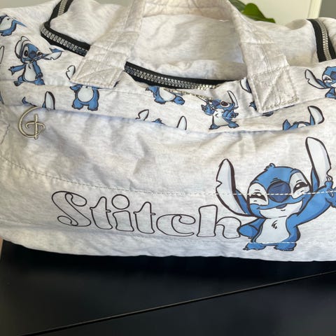Disney Mickey og Minnie weekendbag i kunstlær i svart og hvit med røde detaljer. Vesken har prikkemønster med små silhuetter av Mikke-hoder, samt to frontlommer i svart kunstlær, hvor den ene har motiv av Mikke og Minnie og den andre teksten «The Original Duo». Baggen har doble bærehåndtak og avtakbar skulderrem, samt stor hovedlomme med glidelås og ekstra lomme på baksiden. Egnet som weekendbag, reisebag eller større håndveske.