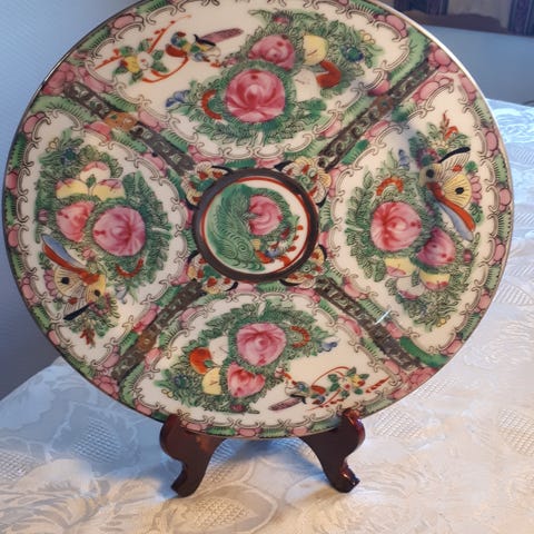 Kinesisk vase og fat (selges samlet)