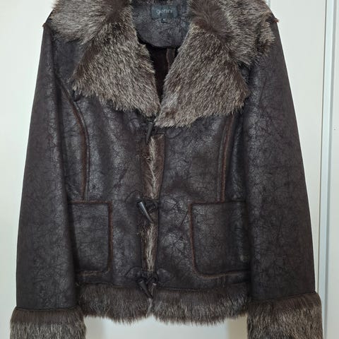 Bik Bok yttertøy i størrelse XL. Jakken er svart og laget av imitere fuskepels, med glidelås og foret innside. Passer til bruk som ytterplagg i kaldt vær.