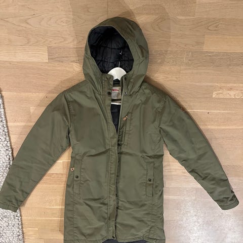 Flott fjellreven Kiruna parkas i dyp sort. ( ingen padding) Fargen er vanskelig å få frem på foto men den dyp svart. Ingen bruksmerker. En friluftsjakke i det tradisjonelle slitesterke og vannbestandige G 1000 stoffet til fjellreven. Den er str xl