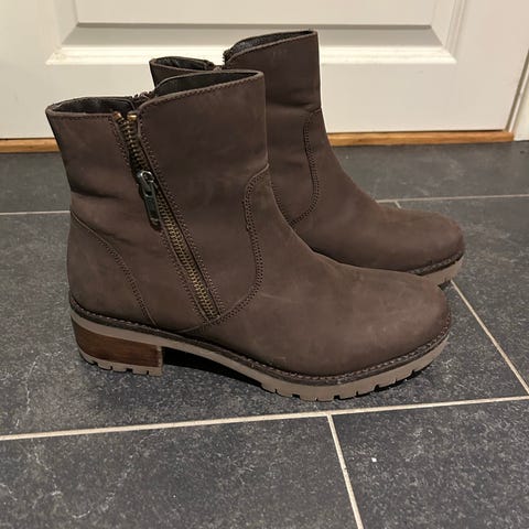 Grå støvletter i semsket skinn i str 41. Klarer ikke å finne merken.