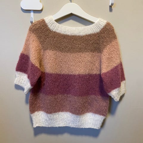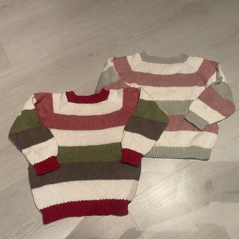 Selger denne fine stripete genseren til barn 3-4 år. Den er hjemmelaget og av bomull. Kan sendes med fiks ferdig