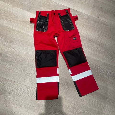 Pent brukt arbeidsbukse med mange lommer og polstring på knærne.