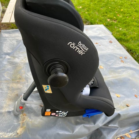 Britax Römer Max-Way Plus barnesete med en vektkapasitet på opptil 25 kg. Barnesetet er semi-universelt og egnet for barn mellom 9 og 25 kg. Trenger en vask, ellers i grei stand.