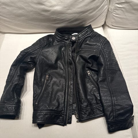 Skikkelig kul imitert skinnjakke for barn 5-6 år fra Hennes og Mauritz selges! Kan sendes med fiks ferdig.