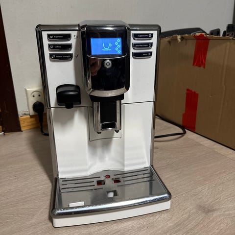 Selges pga nytt hus med innebygd kaffemaskin. Den har fungert utmerket og har aldri vært noe feil på den. Den er ca 5 år gammel.
