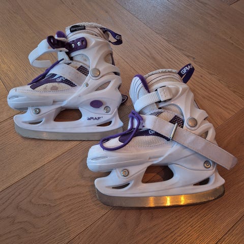 Regulerbare skøyter til barn - størrelse 27-30 hvit og lilla