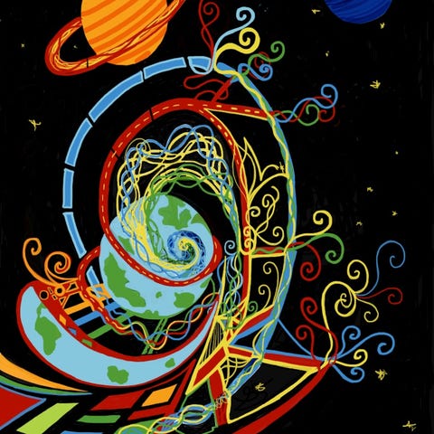 Boken svømmer over av bilder, illustrasjoner og digitale rendere som er som vakker abstrakt kunst, med farger som får deg til å tro at noen la en syrelapp i morgenkaffen din.