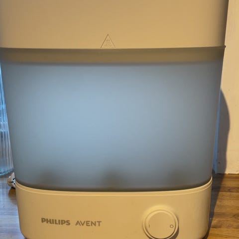 Kjekk flaskesterilisator fra Phillips Avent selges da vi er ferdig med flaske🍼 To etasjer for flasker + flaskedeler, samt oppbevaringskurv for flaskedeler/smådeler dersom en ønsker å vaske smådeler nede også.