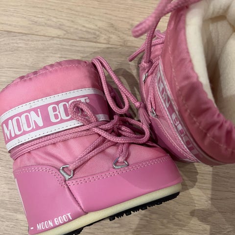 Moon Boot barnestøvler for jente i størrelse 24. Støvlene har et fargerikt design med regnbuemønster og rosa lisser. Sålen har godt mønster for grep. Egnet for barn i kaldt vær. De har bare blitt prøvd men va for små, har dessverre kastet emballasjen da jeg trodde de passet henne. Må derfor selge de.