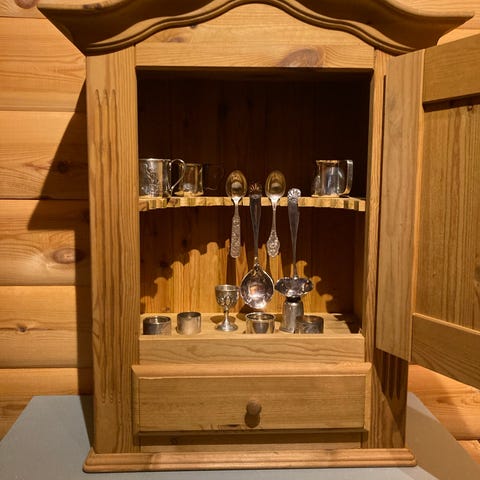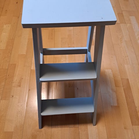 Høy fin og dekrativ pidestal i tre. Bruksmerker kan fikse skrap med en brun tusj f.eks.