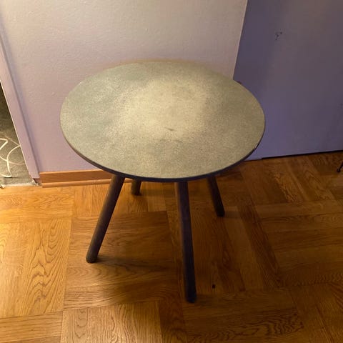 Selger 3 stk små runde brettbord/sidebord fra IKEA (GLADOM). Perfekte som sofabord, nattbord, plantebord eller til balkong. Lette å flytte, stabile og tar lite plass.