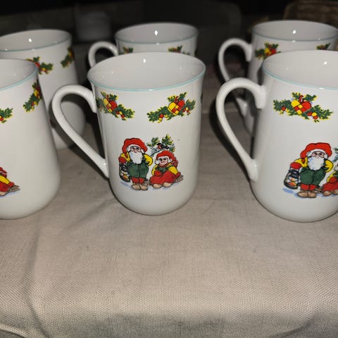 5 fine, hvite julekopper med nisse på. I god stand!