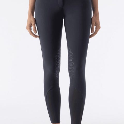 Equiline Eos ridebukser i svart farge og blå. størrelse 46. Laget for komfort og funksjonalitet under ridning, med silikonprint på innsiden av bena for bedre grep.