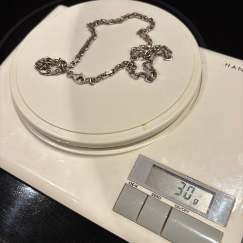 Flott tykt sølvkjede med anheng, laget av gullsmed Reidun Breistig. Som nytt, ingen skader eller bruksspor. Knapt brukt. Breisteig startet eget verksted i 1989. Veier 149 gram. Kjedet måler 58 cm, anhenget måler2,2 cm. Ligger i originaleske.
