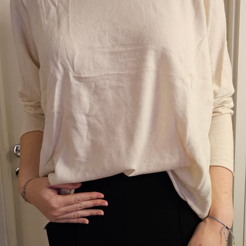 Mål: bredde fra armhule til armhule 57 cm, lengde 67 cm.