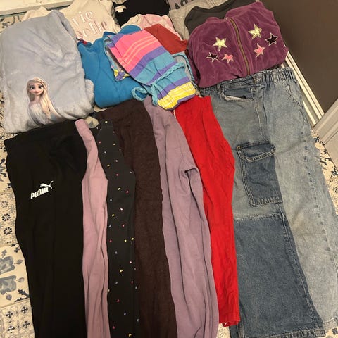 Pose med klær fra str 146 til S gies bort. Noe godt brukt og noe lite brukt. Julekjolen mangler en knapp, men er lett å fikse
