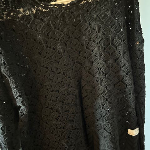 Nøkkelord: strikkegenser, sort genser, damegenser, v-hals, hverdagsgenser, pent brukt, xl