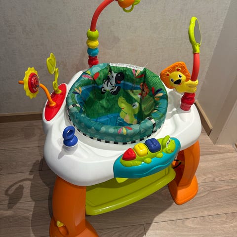 Aktivitetsbord, gå vogn, 2 lekematter og søt kanin stol selges samlet.