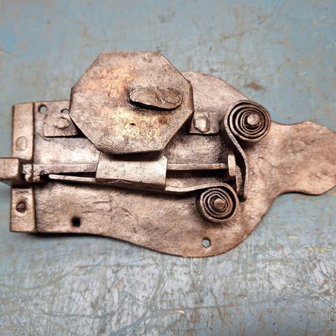 Den er slik at den ene armen åpnes og den andre er fast. Ekte bondentikk og håndlaget.