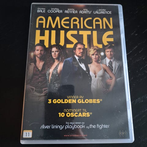Tilstand: Pent brukt. Prisvinnende storfilm med stjernelag bestående av Christian Bale, Bradley Cooper og Jennifer Lawrence (se bilder).