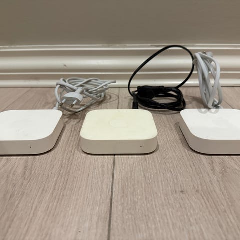 2 lite brukte, feilfrie Apple AirPort Express A1392 routere. Originale strømkabler medfølger.