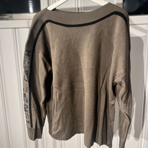 Nøkkelord: i’cona, sort genser, stilig genser, damegenser, genser med print, pent brukt, XL