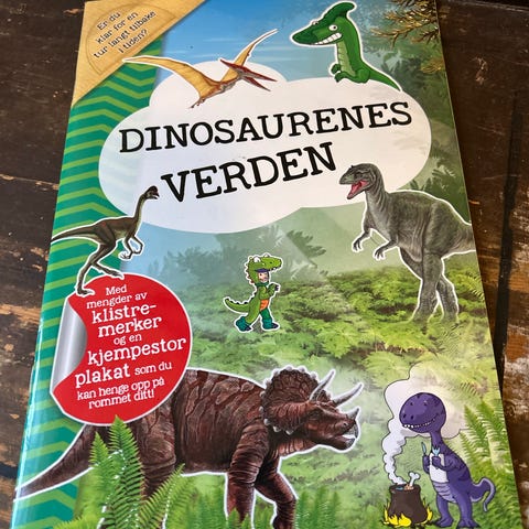Dinosaur 2 tegnebøker og 1 klistermerkebok, flere klistermerker. Ikke brukt.