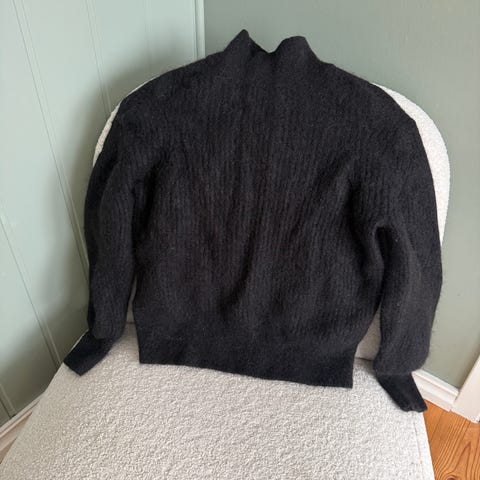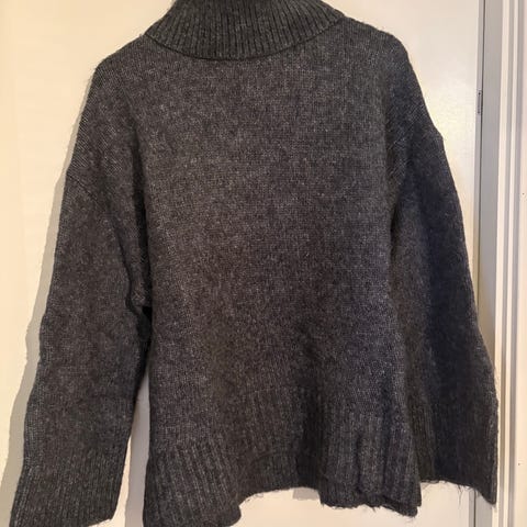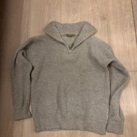 Mackenzie genser i størrelse M for kvinner, laget av ullmateriale. Genseren har en grå farge og en glidelås i halsen.