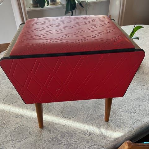 Vintage puff med lokk og rom til oppbevaring