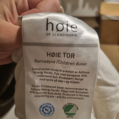 Dunpute til barn i str. 40x60 fra Andungen. Veldig lite brukt, kun hos besteforeldre.