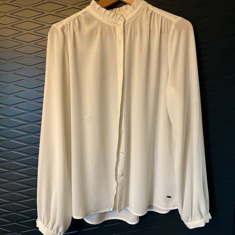 Jean Paul Bluse i størrelse L for damer, tror det er polyester, tynt stoff. Blusen har et flerfarget blomster mønster.