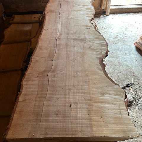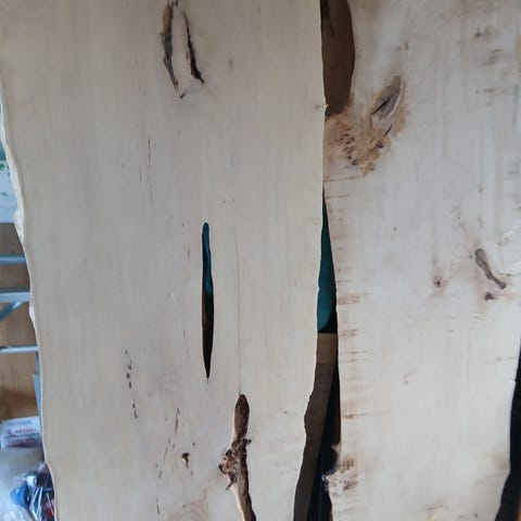 Sett med rekkverkbord med dekorativ kant i naturlig trefarge. Plankene kan brukes til dekorative formål eller bygging av gjerder og lignende.